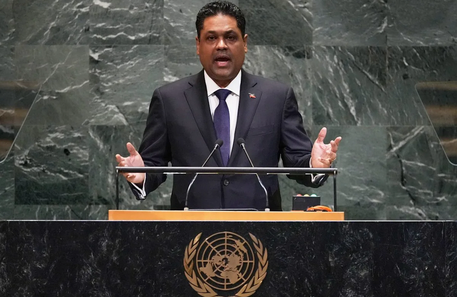 En photo d’article, le président du Conseil présidentiel de transition d’Haïti, Laurent Saint-Cyr, au moment de s’adresser à la 80e Assemblée générale des Nations unies, à New York, le 25 septembre 2025. (crédits : Photo AP/Richard Drew)
