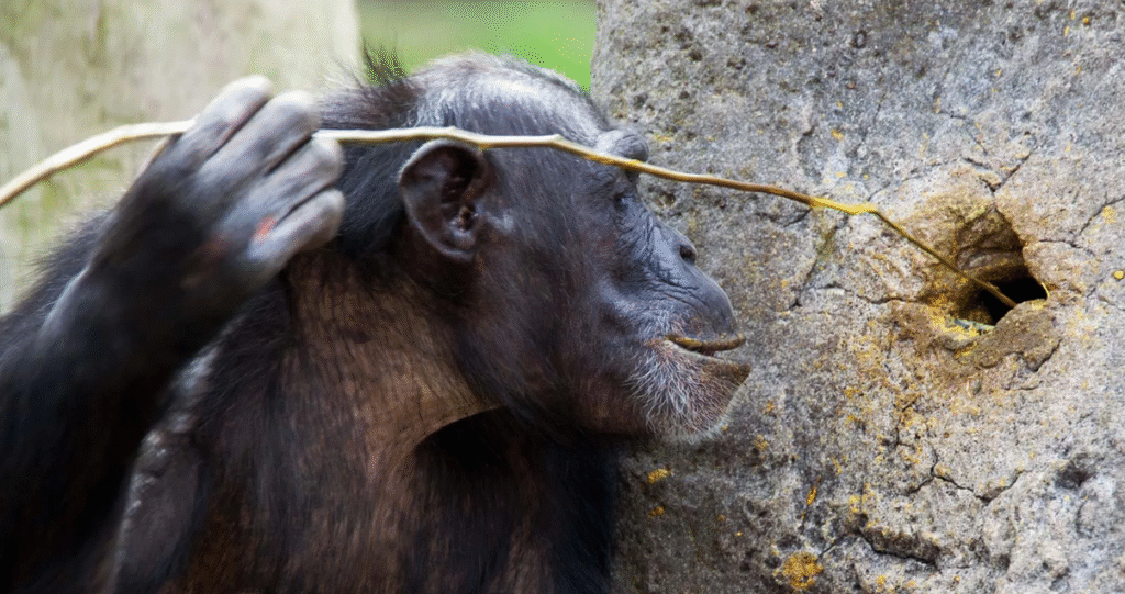 Sa première grande découverte survient en moins de six mois : elle observe des chimpanzés fabriquant et utilisant des outils pour pêcher des termites dans les nids avec des bâtons. À l’époque, les scientifiques pensaient que seul l’être humain pouvait créer des outils, et que cette capacité nous distinguait des autres espèces. Ses travaux, accompagnés de nombreuses autres observations sur des comportements sociaux jusque-là inconnus, révèlent que les chimpanzés sont des individus complexes, dotés d’émotions et de culture, et non de simples animaux.