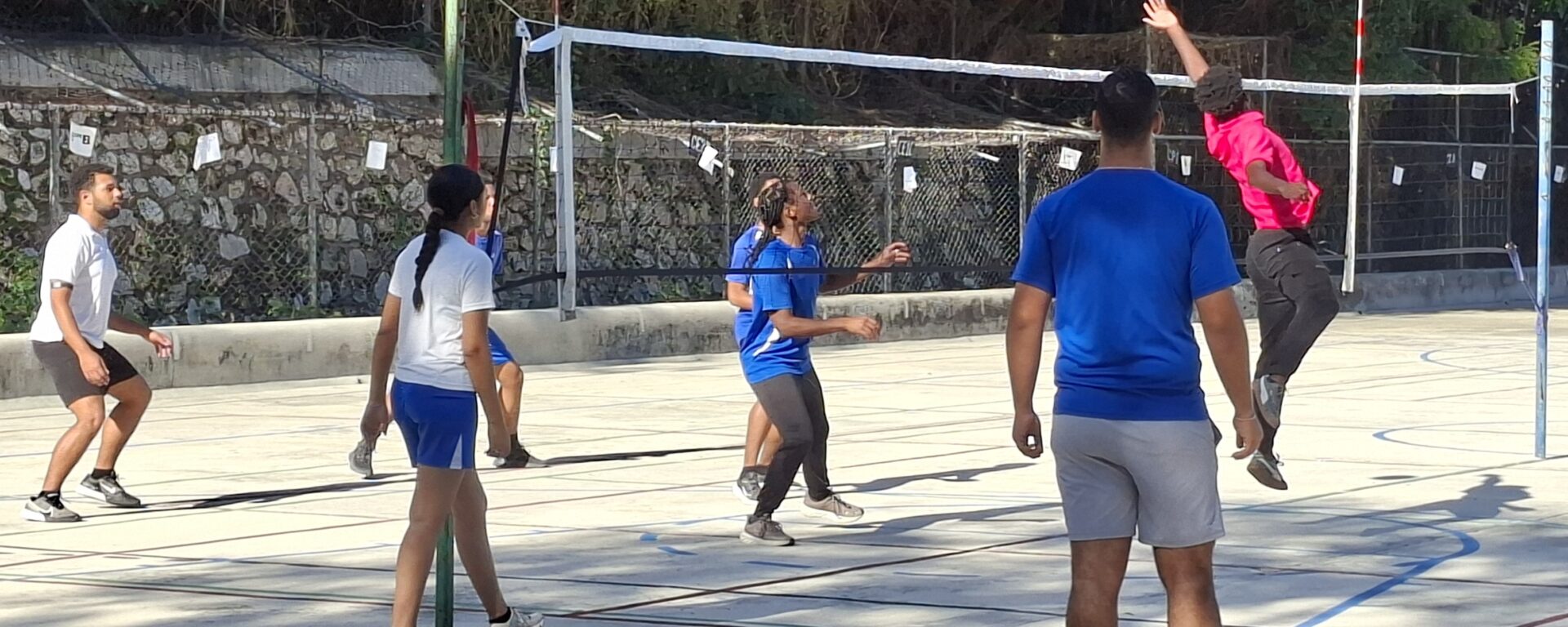 Dès 8h30, ils étaient en équipes, à servir, passer, et attaquer. Le jeu était dynamique et le jury était très satisfait au moment où je suis allé leur parler. “Ça c’est du volley !” m’a commenté Mme Rébu, tout en prenant des notes tandis que les élèves construisaient leurs attaques de façon offensive !